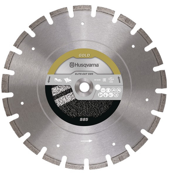 A Gold sorozat részét képező Elite-Cut™ S85 korongot kifejezetten arra tervezték, hogy optimális vágási teljesítményt biztosítson az aszfalt, zöldbeton és egyéb, fokozottan abrazív alkalmazások esetében. A korong védőszegmenssel van ellátva, amely megakadályozza az alulvágást.