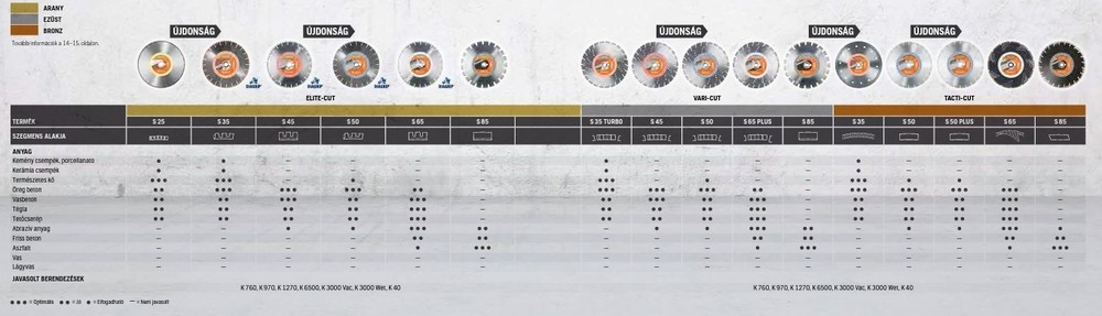 Alkalmas aszfalt, friss beton és abrazív anyagok vágására.