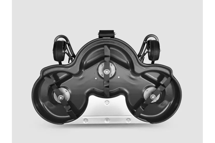 A Husqvarna nagy teljesítményű, 132 cm-es (52") kombi fedélzete. Az innovatív műszaki megoldásnak köszönhetően ez a kombinált fedélzet tartalmazza mind a mulcsozás, mind a hátsó kihordás vágási módszereit. A nagy teherbírású fedélzet egy darabból készült, 4,5 mm vastag préselt acéllemezből áll, és kúpkerékkel meghajtott tengellyel rendelkezik.